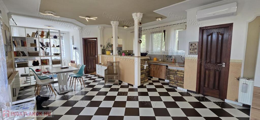 A CasaNetWork Ingatlanhálózat eladásra kínálja a 174602163 számú, mediterrán stílusú családi házat és a hozzá tartozó kisebb lakóépületet Cegléd külterületén. Az ingatlan könnyen megközelíthető, mindössze 400 méterre található az aszfaltos úttól, csendes, nyugodt környezetben. A buszmegálló szintén 400 méterre helyezkedik el, a környék lakott. A közlekedés kiváló, Cegléd központja gépkocsival mindössze 10 perc alatt elérhető.