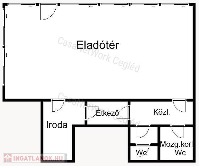 • - az ingatlanban egy 110 nm-es eladótér, egy irodahelyiség, közlekedő, mosdó és egy mozgássérült mosdó található